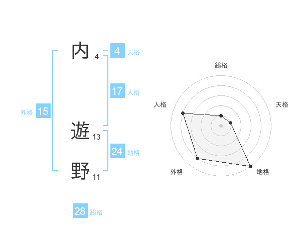 内 遊野さんの外格は15画の4点!