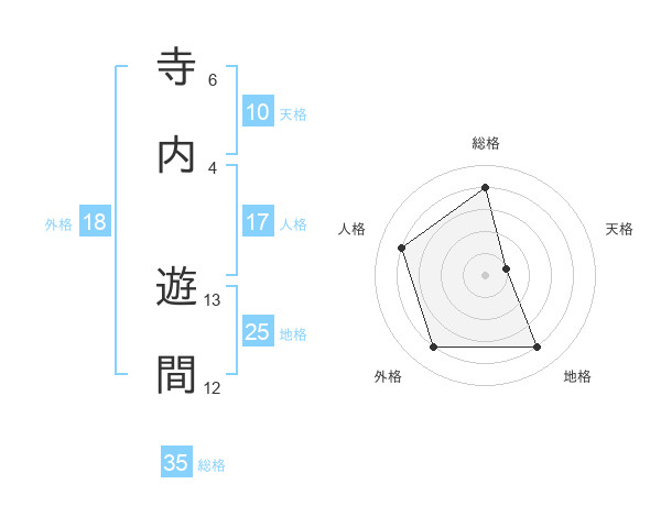 寺内 遊間さんの総格は35画の4点!