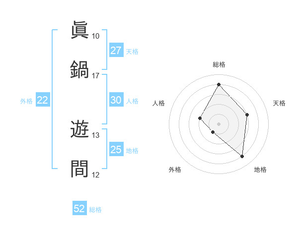 眞鍋 遊間さんを姓名の画数から五運を鑑定