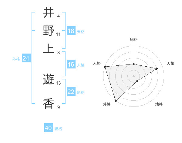井野上 遊香さんを姓名の画数から五運を鑑定