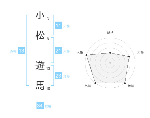 小松 遊馬さんの外格は13画の5点!