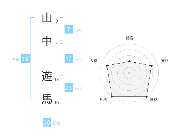 山中 遊馬さんの総格は30画の2点!