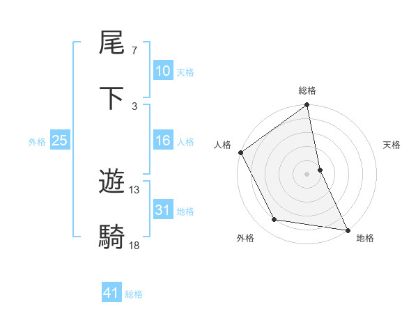 尾下 遊騎さんを姓名の画数から五運を鑑定