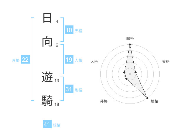 日向 遊騎さんを姓名の画数から五運を鑑定