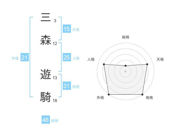 三森 遊騎さんの総格は46画の1点!