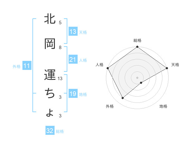 北岡 運ちょさんを姓名の画数から五運を鑑定