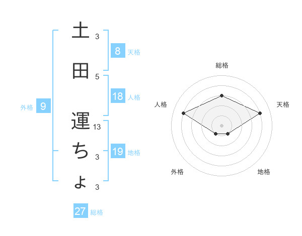 土田 運ちょさんを姓名の画数から五運を鑑定