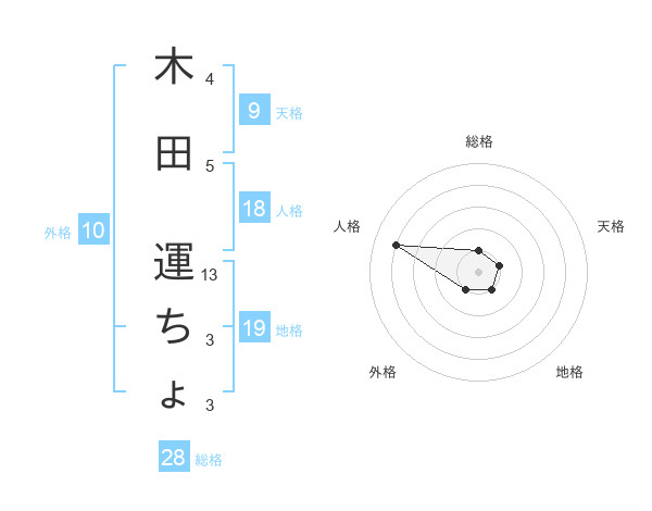 木田 運ちょさんを姓名の画数から五運を鑑定