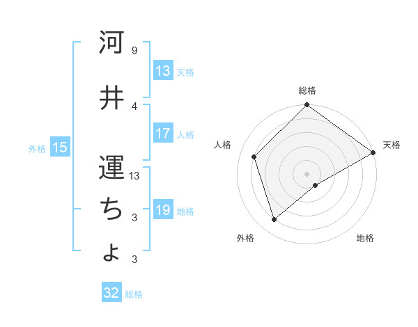 河井 運ちょさんの総格は32画の5点!