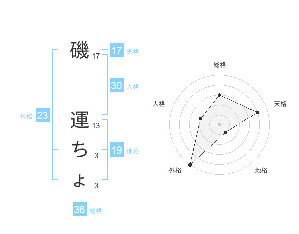 磯 運ちょさんの外格は23画の5点!