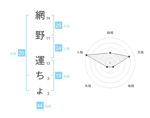 網野 運ちょさんを姓名の画数から五運を鑑定