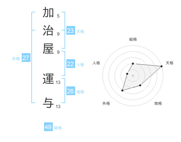 加治屋 運与さんを姓名の画数から五運を鑑定