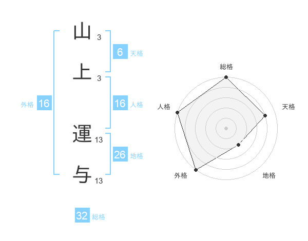 山上 運与さんの外格は16画の5点!