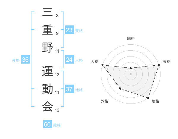 三重野 運動会さんを姓名の画数から五運を鑑定