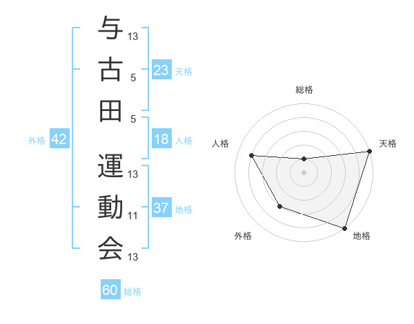 与古田 運動会さんを姓名の画数から五運を鑑定