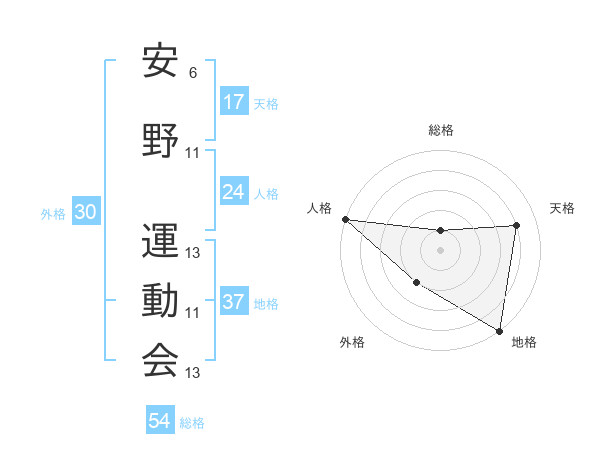 占い結果は姓名判断である以上、良い場合も悪い場合もありますが、決してお名前を誹謗中傷するものでなく、画数の自動計算によって得られたものです。また、本サイトの検索によって得られた鑑定結果で、第三者を誹謗中傷したり名誉を棄損するような行為を禁じます。