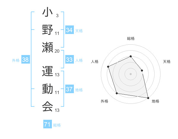 小野瀬 運動会さんを姓名の画数から五運を鑑定
