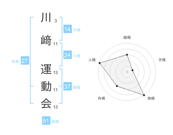 川﨑 運動会さんを姓名の画数から五運を鑑定