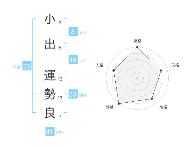 小出 運勢良さんを姓名の画数から五運を鑑定