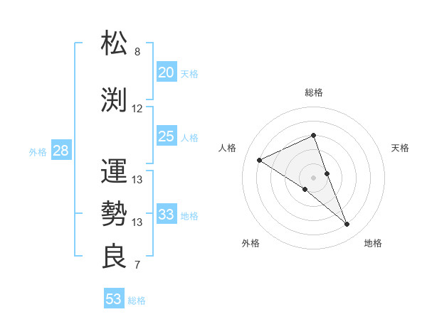 松渕 運勢良さんを姓名の画数から五運を鑑定