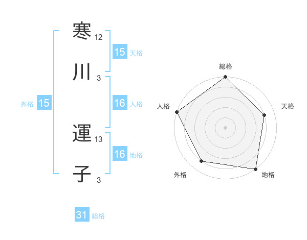 生活面を象徴する運勢です。外部から受ける影響力を表し、結婚運、家庭運や職場、環境への順応性を表します。
