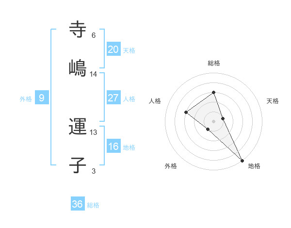 寺嶋 運子さんの総格は36画の3点!