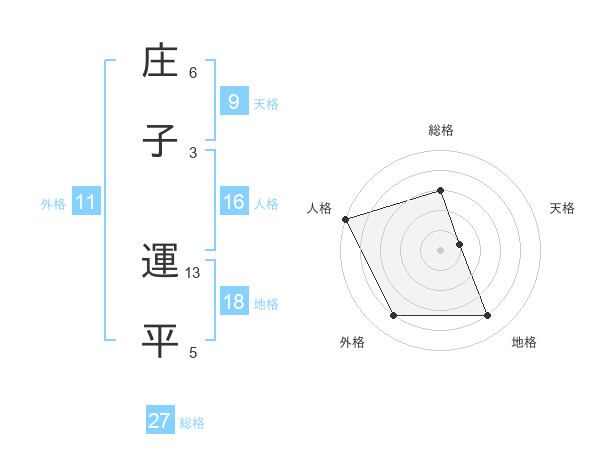 庄子 運平さんの総格は27画の3点!