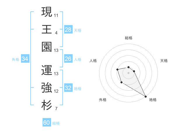 現王園 運強杉さんを姓名の画数から五運を鑑定