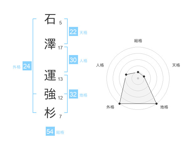 石澤 運強杉さんを姓名の画数から五運を鑑定