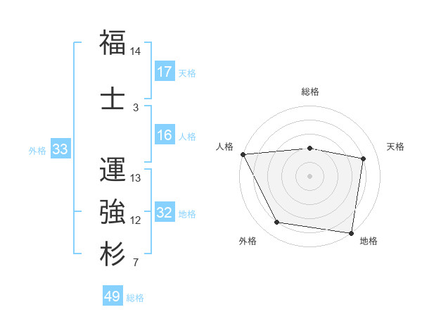 福士 運強杉さんの外格は33画の4点!