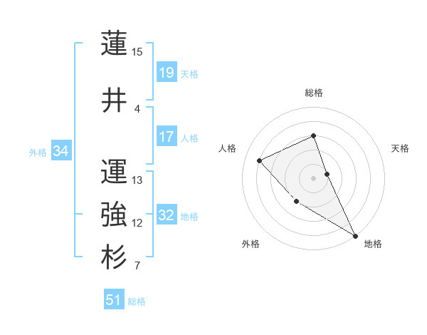 蓮井 運強杉さんを姓名の画数から五運を鑑定