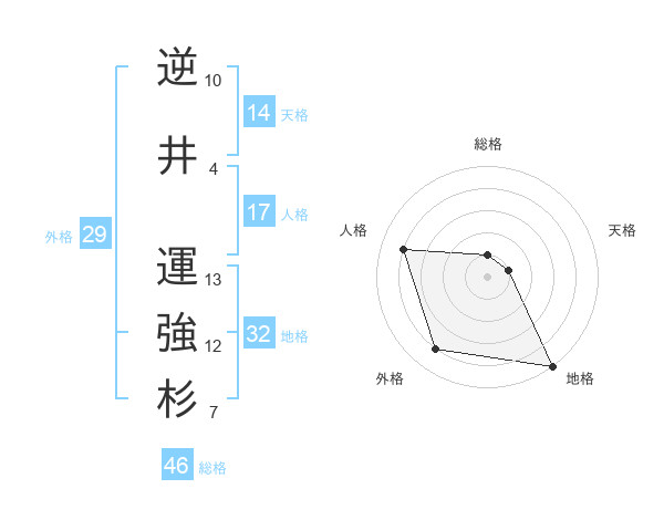 逆井 運強杉さんを姓名の画数から五運を鑑定