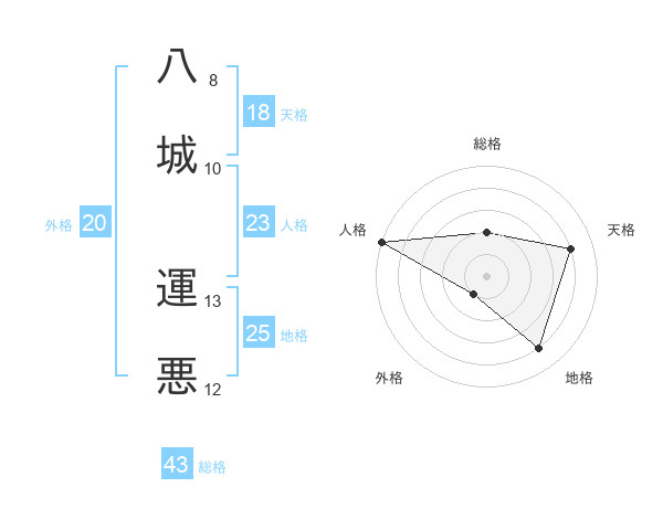 八城 運悪さんの天格は18画の4点!