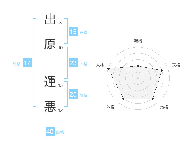出原 運悪さんの外格は17画の4点!