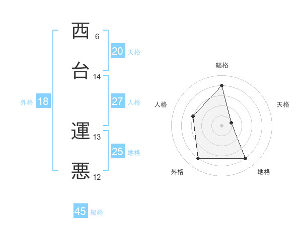 西台 運悪さんの天格は20画の1点!