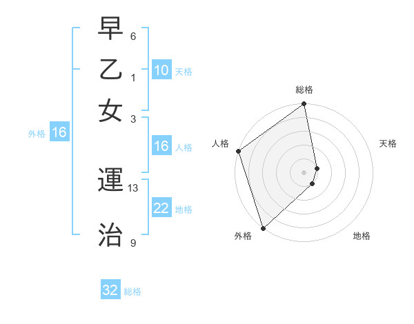 早乙女 運治さんを姓名の画数から五運を鑑定