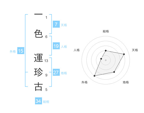 一色 運珍古さんを姓名の画数から五運を鑑定