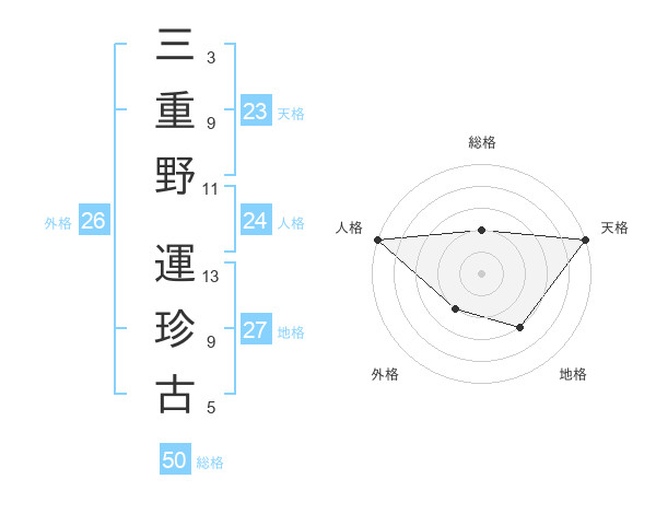 三重野 運珍古さんを姓名の画数から五運を鑑定