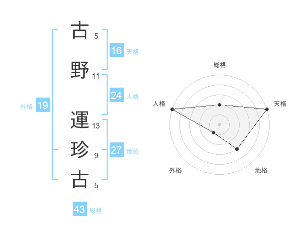 古野 運珍古さんを姓名の画数から五運を鑑定
