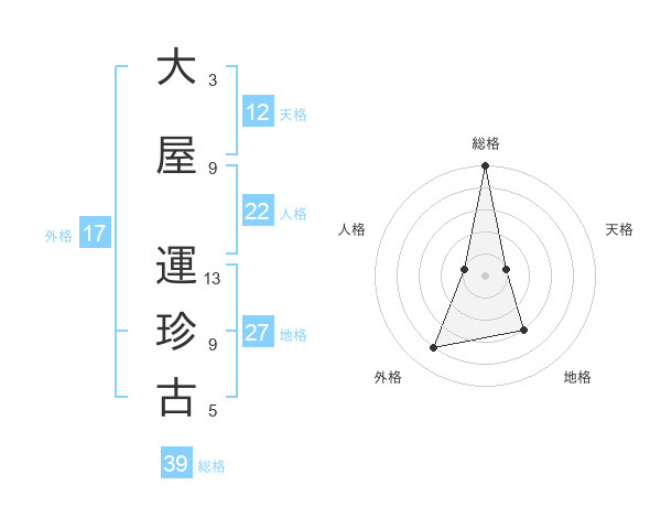 大屋 運珍古さんを姓名の画数から五運を鑑定