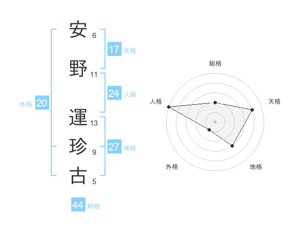 安野 運珍古さんの総格は44画の2点!