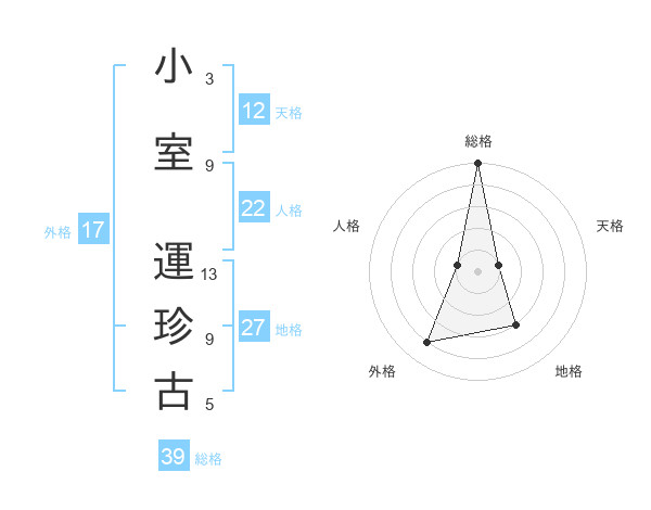 小室 運珍古さんを姓名の画数から五運を鑑定