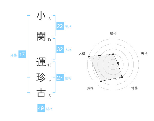 小関 運珍古さんを姓名の画数から五運を鑑定