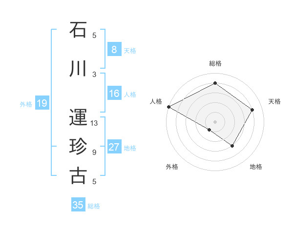 石川 運珍古さんの総格は35画の4点!