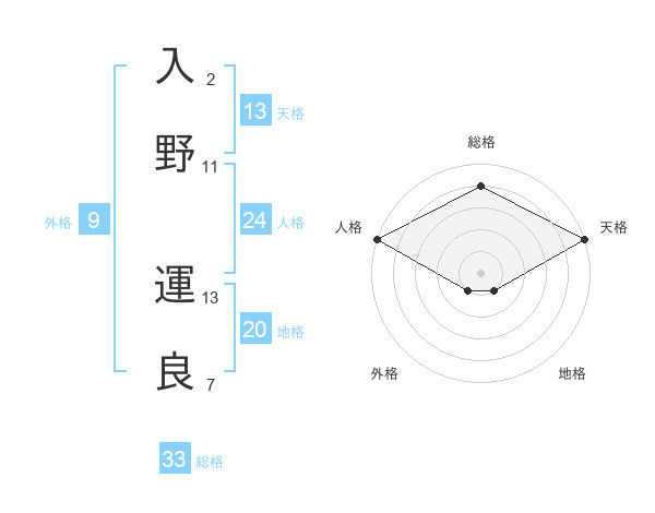 入野 運良さんの天格は13画の5点!