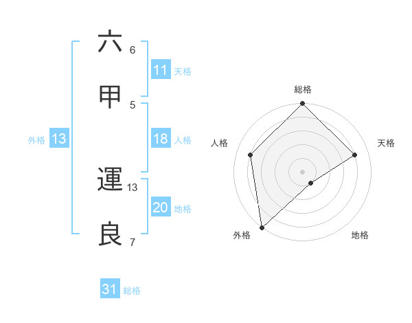 六甲 運良さんの総格は31画の5点!