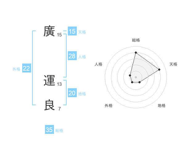 廣 運良さんの総格は35画の4点!