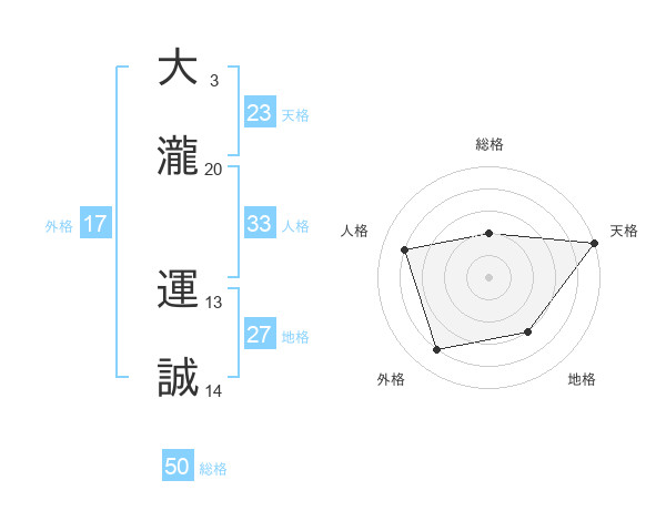大瀧 運誠さんを姓名の画数から五運を鑑定
