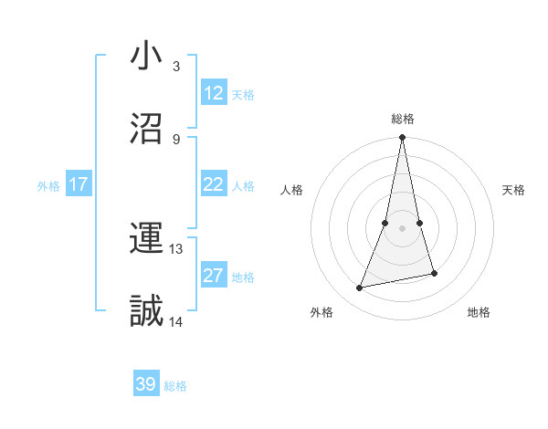 小沼 運誠さんを姓名の画数から五運を鑑定