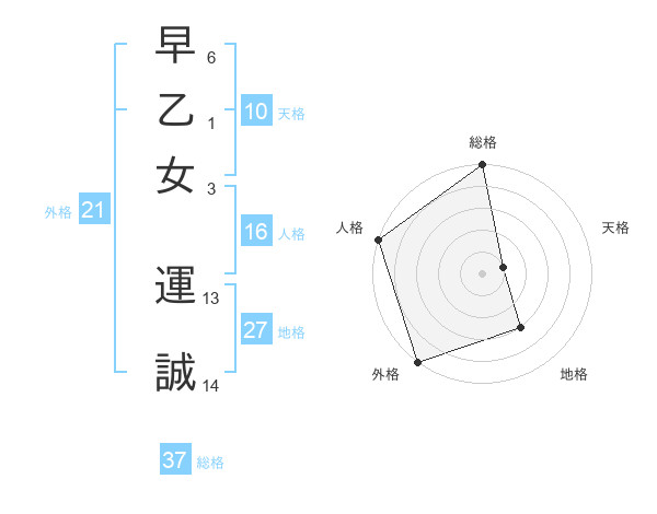 早乙女 運誠さんを姓名の画数から五運を鑑定